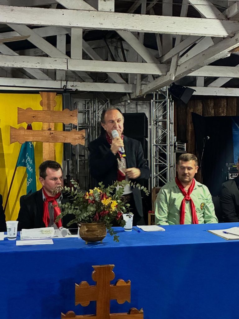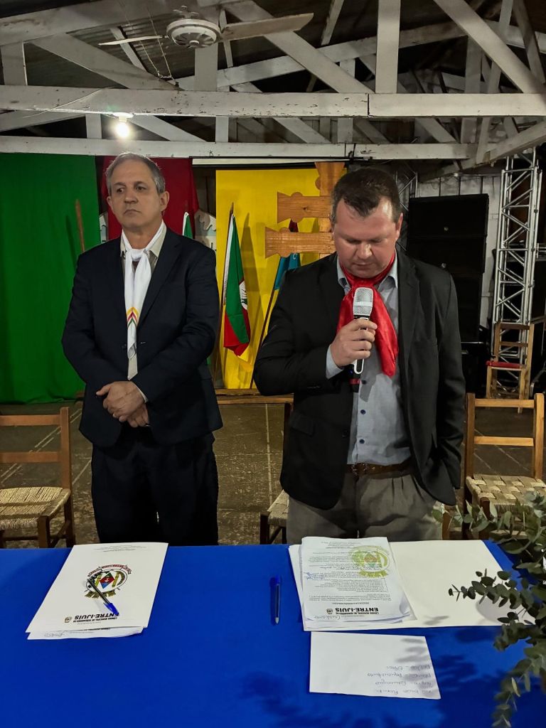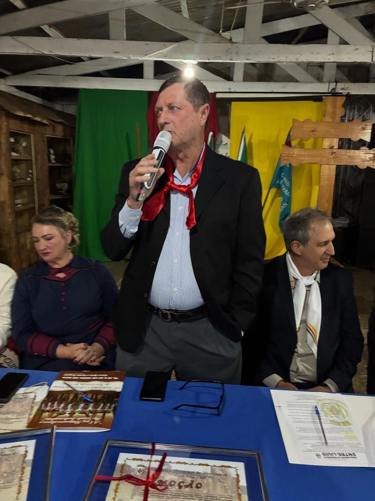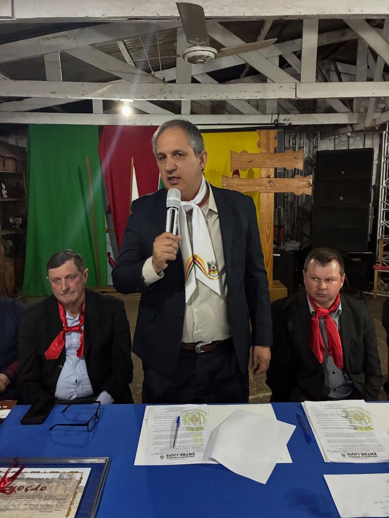 Na noite desta segunda-feira, 15 de setembro, o CTG Passo do Ijuí foi palco da Sessão Solene em homenagem à Semana Farroupilha. A Sessão, promovida pela Câmara de Vereadores de Entre-Ijuís, em parceria com o CTG Passo do Ijuí e CTG O Grito de Sepé, celebrou a tradição gaúcha e valorizou personalidades que contribuíram significativamente para a preservação da cultura.