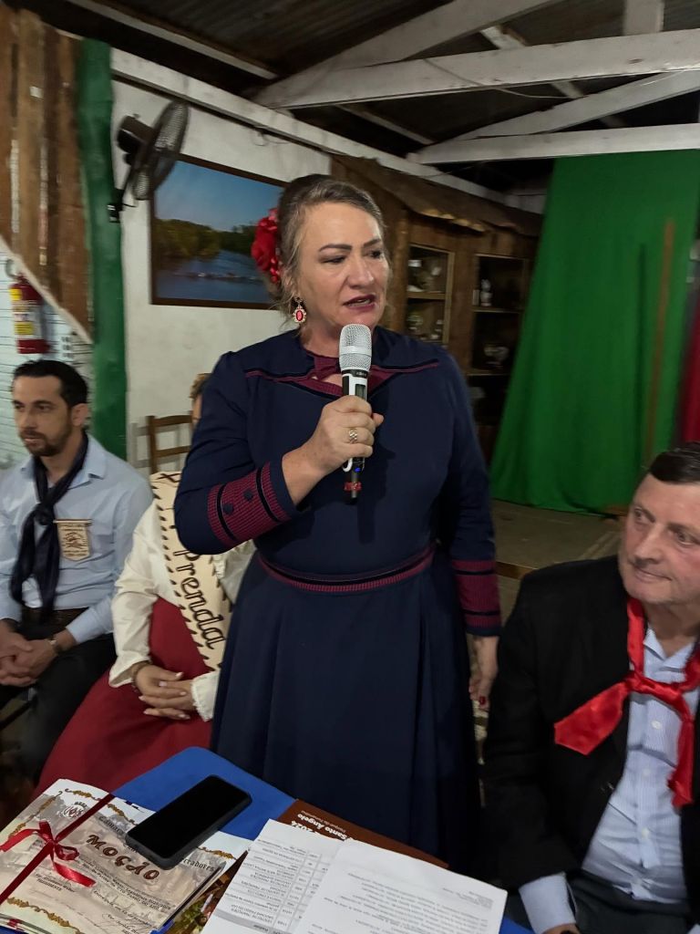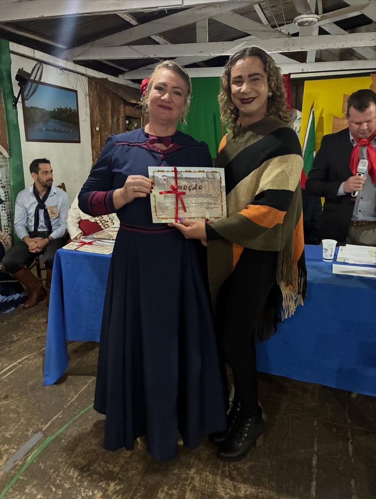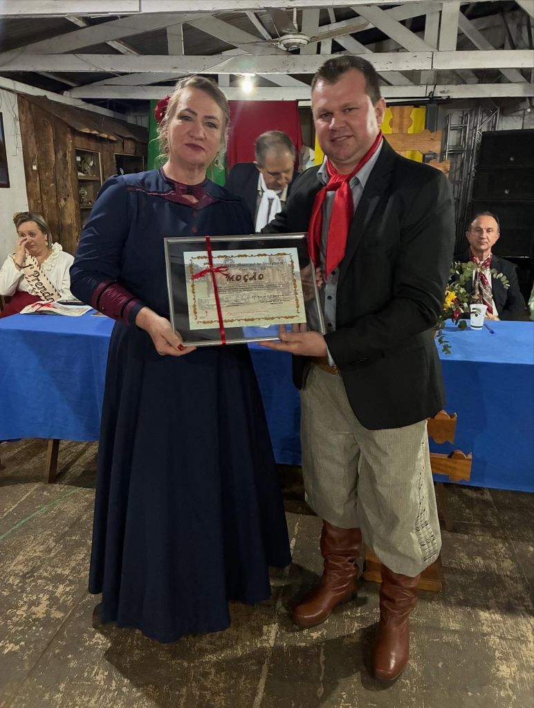 Em continuidade às homenagens, uma moção também foi entregue à comissão organizadora do Rodeio Artístico, no ato representada pela coordenadora do projeto, Iara Rott, destacando o empenho e dedicação para o sucesso do rodeio, que fortaleceu ainda mais a vivência cultural no município.