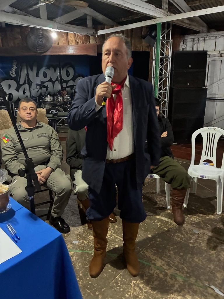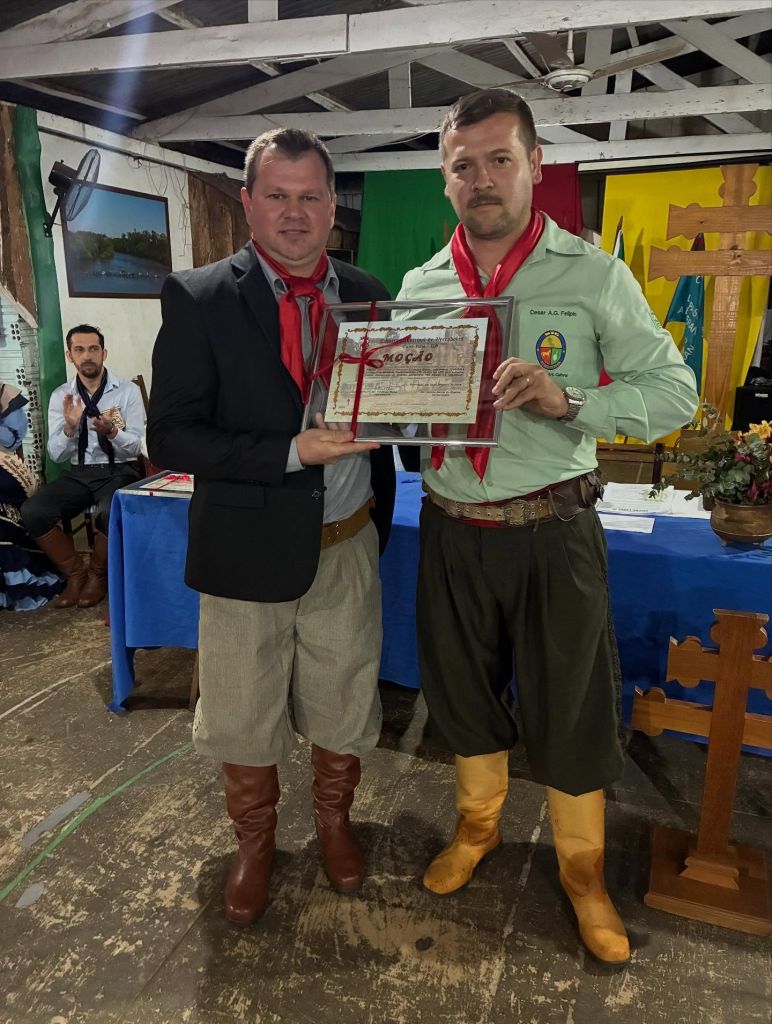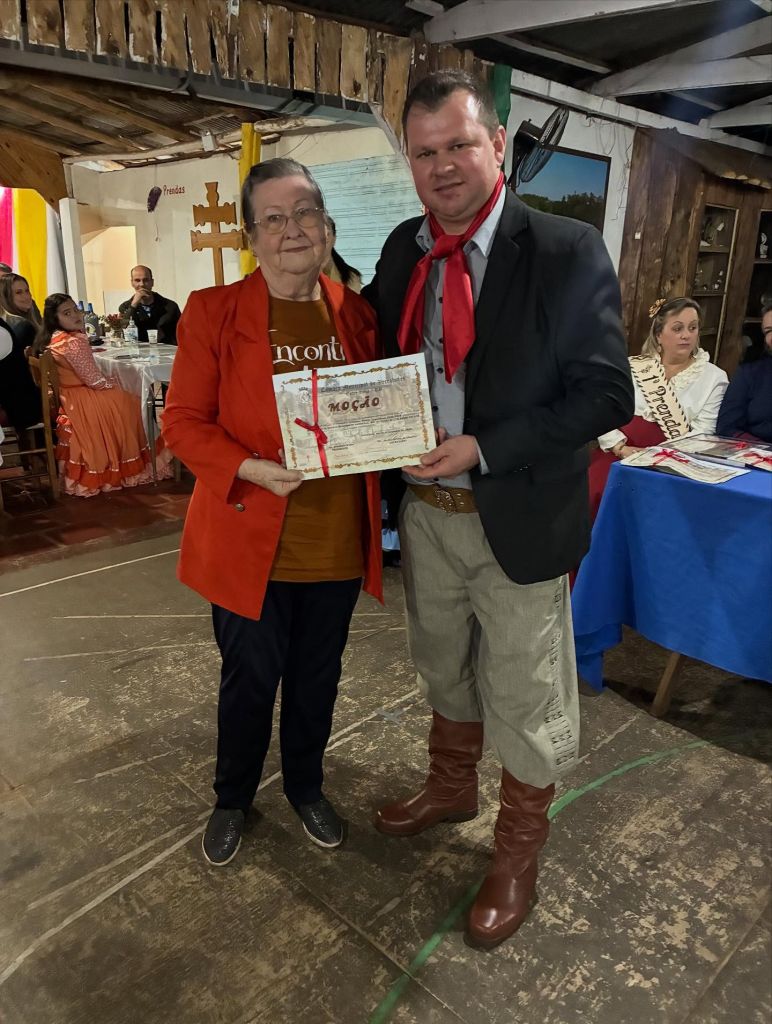 O Patrono Municipal da Semana Farroupilha Sr. João Celeste Pereira Ramos recebeu homenagem pelos relevantes serviços prestado à cultura e as tradições.